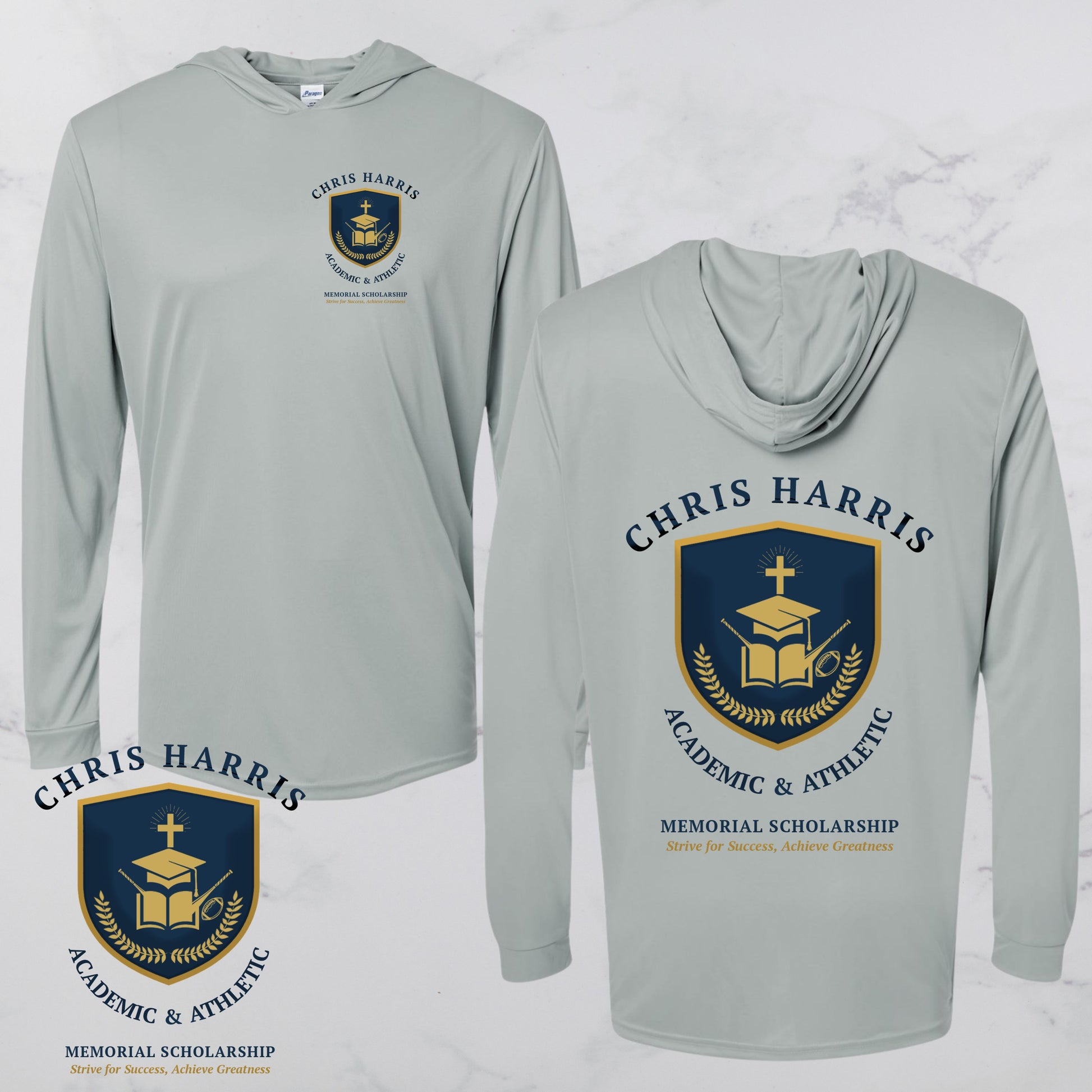 Honor Chris Harris's legacy while staying comfortable in this premium dri-fit hoodie long sleeve tee. Every purchase directly supports the Chris Harris Academic and Athletic Memorial Scholarship, helping inspire the next generation to give back to our community just as Chris did. Featuring moisture-wicking fabric perfect for any season, this tee combines style with purpose. Wear it with pride knowing you're making a real difference. Order yours today and be part of something meaningful!